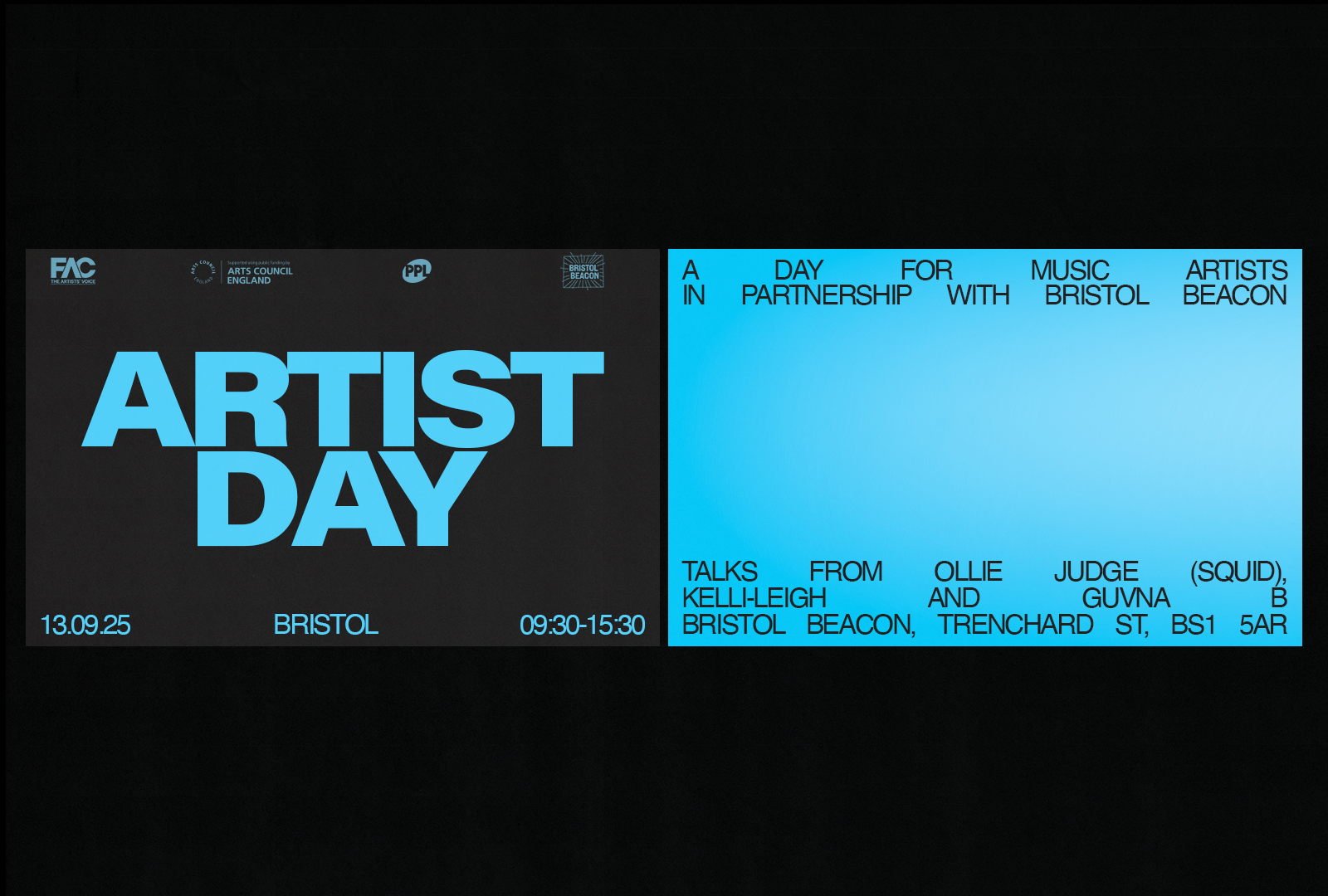 Thanks to the generous backing of Arts Council England and PPL, 2025's FAC Artist Days are free to attend.