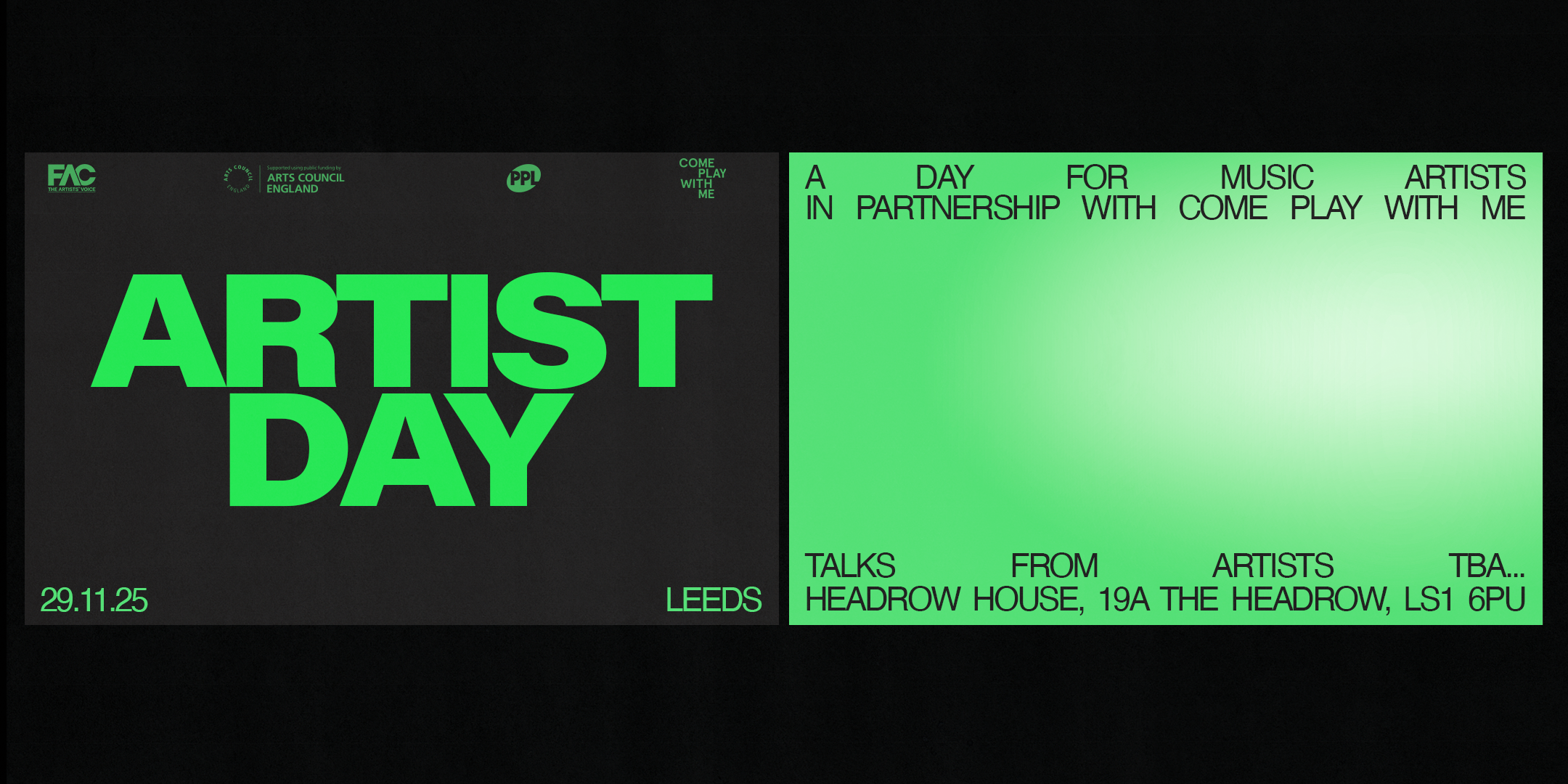 Thanks to the generous backing of Arts Council England and PPL, 2025's FAC Artist Days are free to attend.