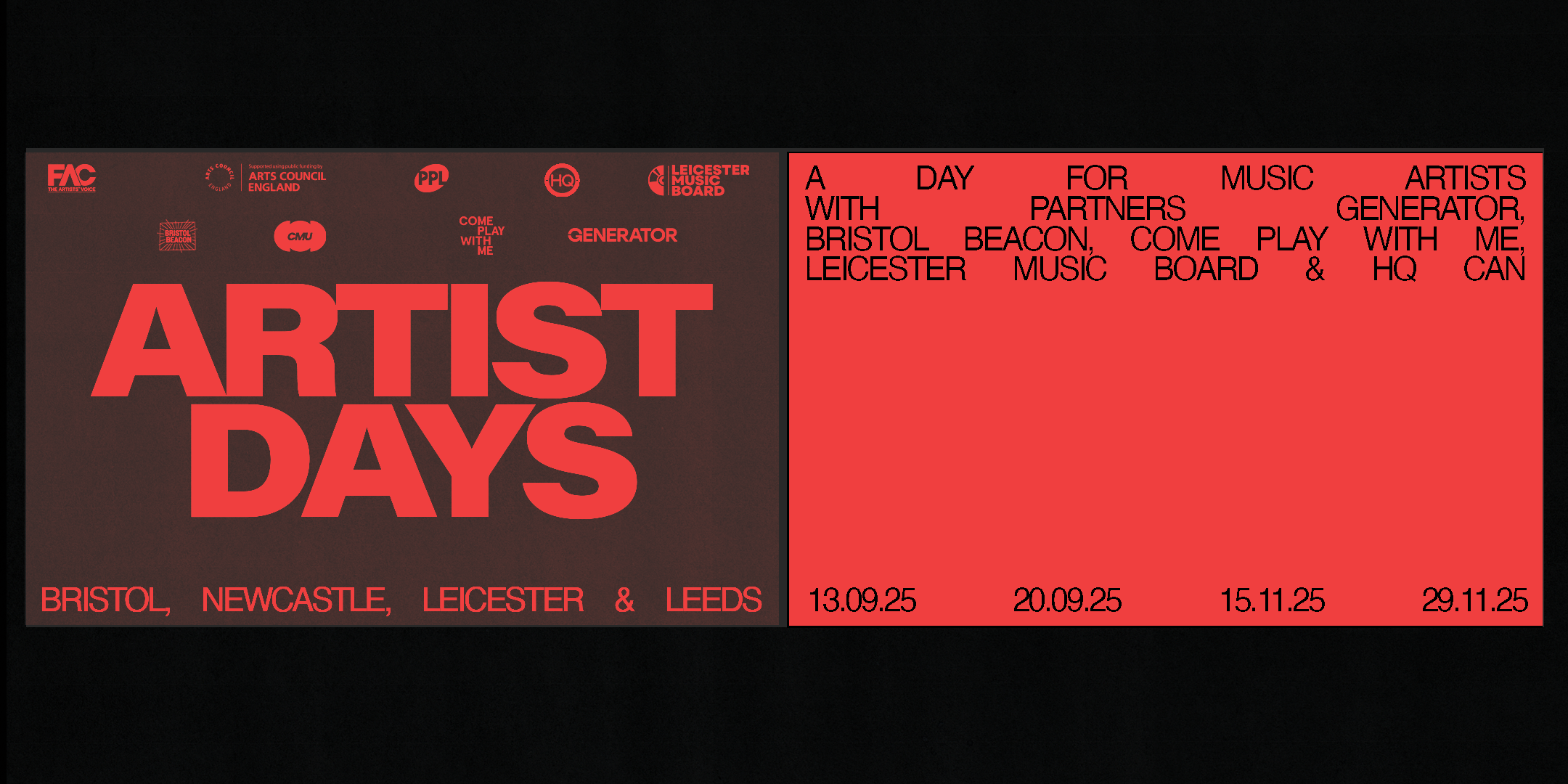 Further ARTIST DAYS are already booked for LCB Depot in Leicester on Saturday 15th November, in partnership with the Leicester Music Board and HQ Can, and at Leeds’ Headrow House on Saturday 29th November, in partnership with Come Play With Me.